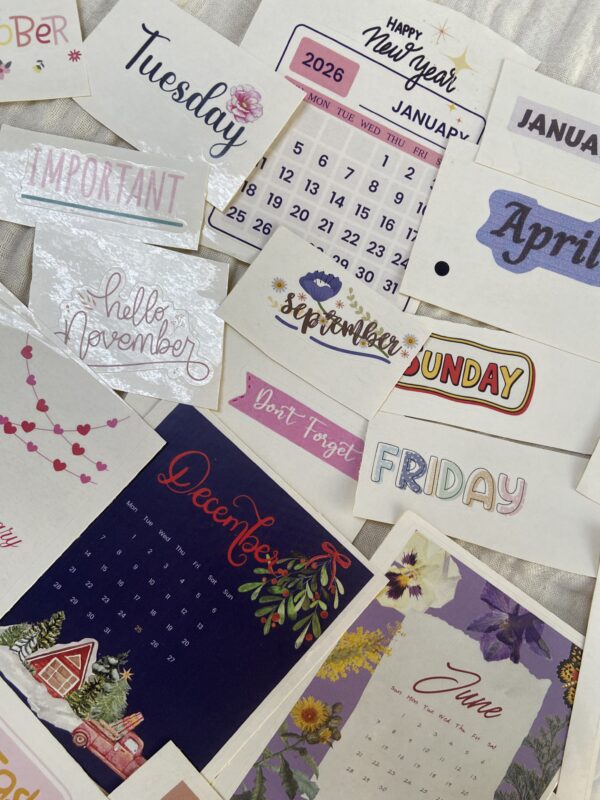 A pack of stickers for those who love to stay on top of things. It consists of 100 paper stickers, including days of the week, words like “Urgent” and “Important”, and the 12 calendar months of 2026.
