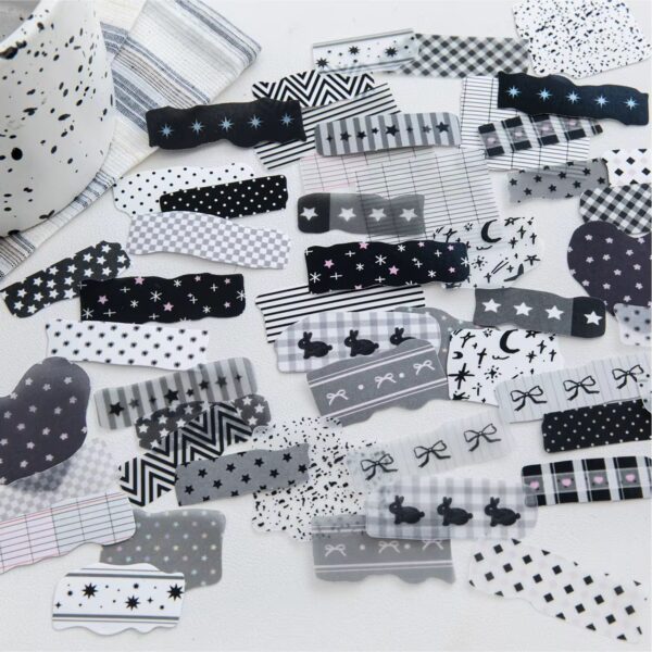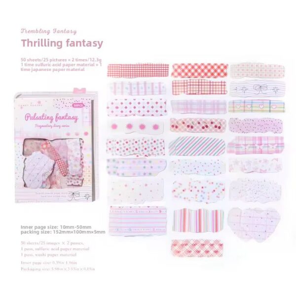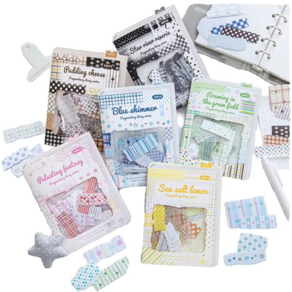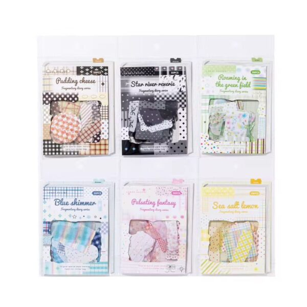 These cutie patootie sticker packs are full of little colorful, patterened scraps to add flavor to your pages. Use them with photos or titles or little important records to add a sparkle. 50 stickers per pack